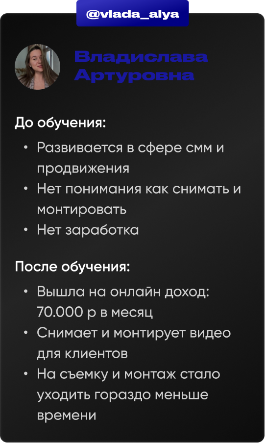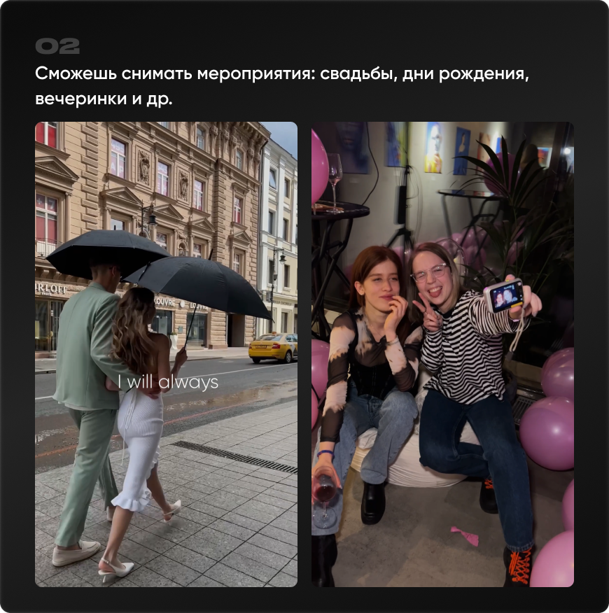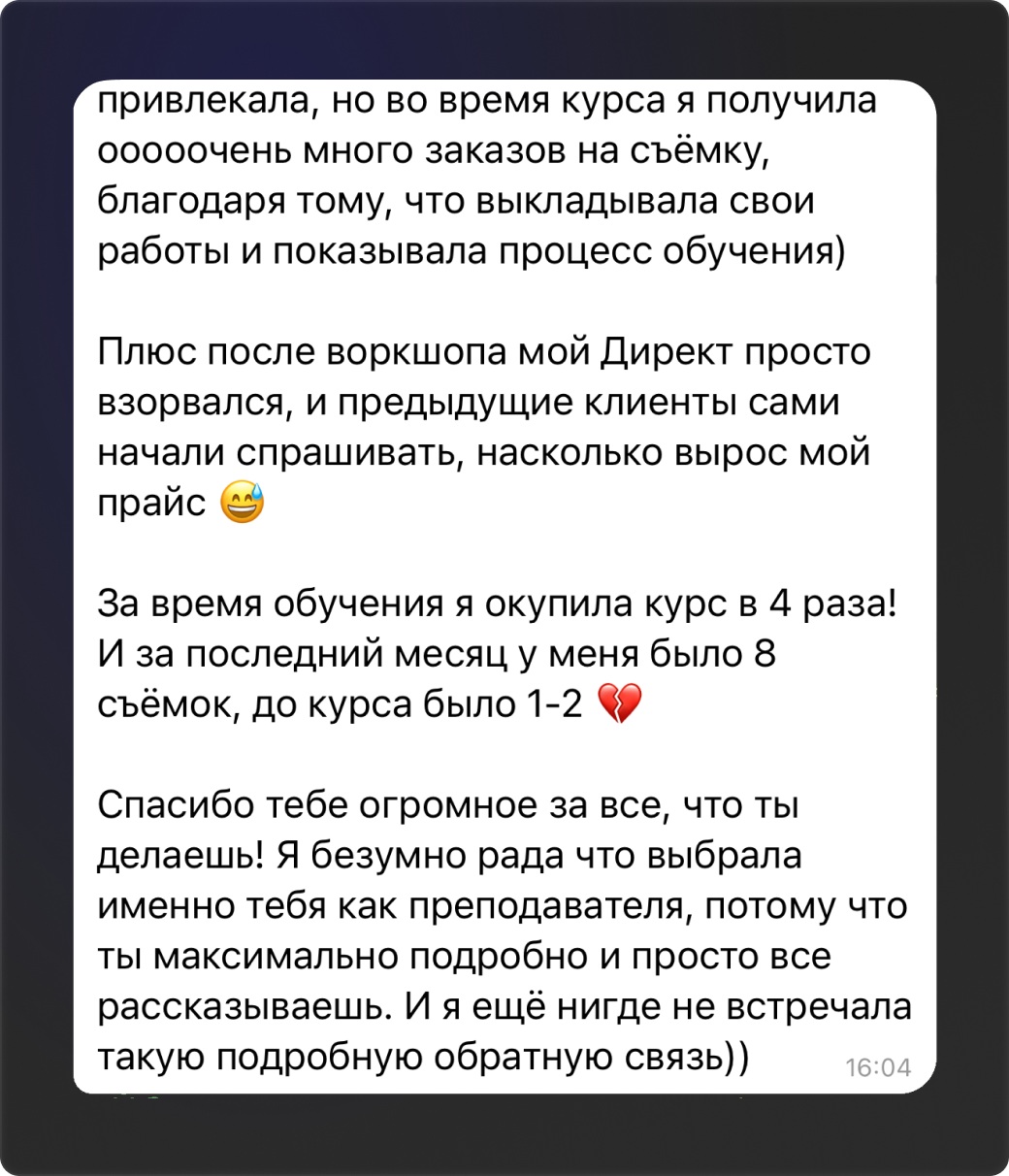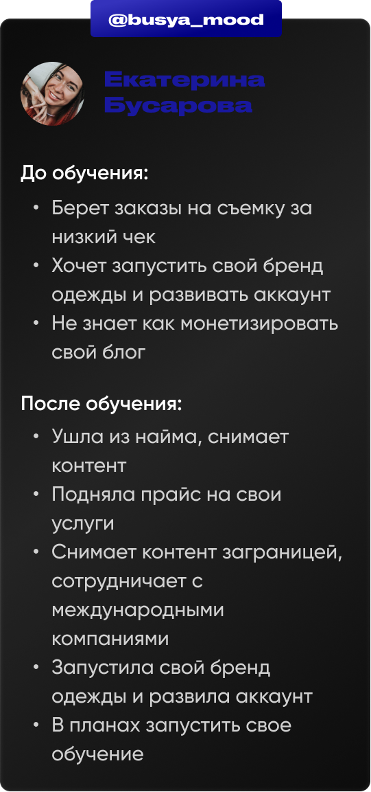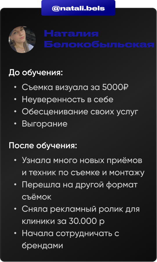 РЕЗУЛЬТАТ:Вы создадите проект своей будущей съемки, сможете собрать команду за минимальный бюджет, узнаете где брать вещи для съемок, как стилизовать съемки, научитесь продумывать креативные идеи для съемок, проработаете свою насмотренность